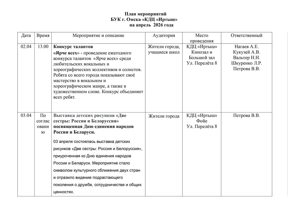 Мероприятия с 02.04.2025 по 20.04 .2025