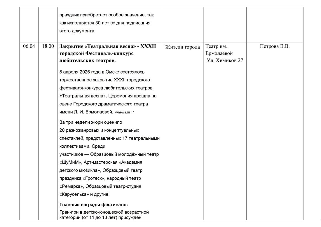 Мероприятия с 20.03.2026 по 03.04.2026