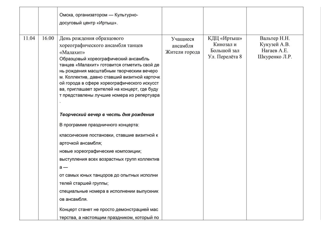 мероприятий БУК г. Омска «КДЦ «Иртыш»