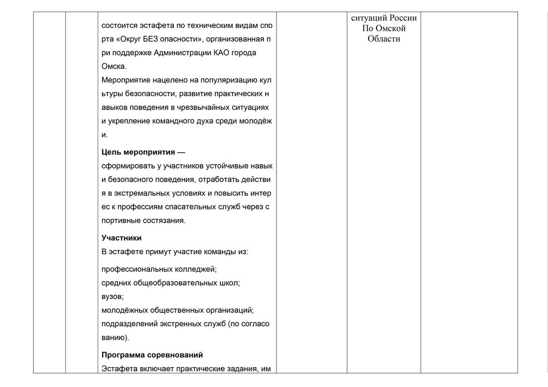 17.05.2024 11.00 | Городской легкоатлетический пробег «Неделя бега – Эстафета памяти» на территории КАО города Омска. | Соревнования среди молодежных команд Кировского административного округа города Омска. Участники – приглашенные команды |