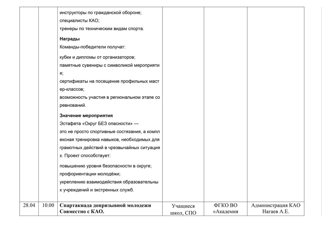 Спартакиада допризывной молодежи по военно-прикладным и техническим видам спорта КАО. | Спартакиада допризывной молодежи по военно-прикладным и техническим видам спорта КАО. Участники – приглашенные команды |